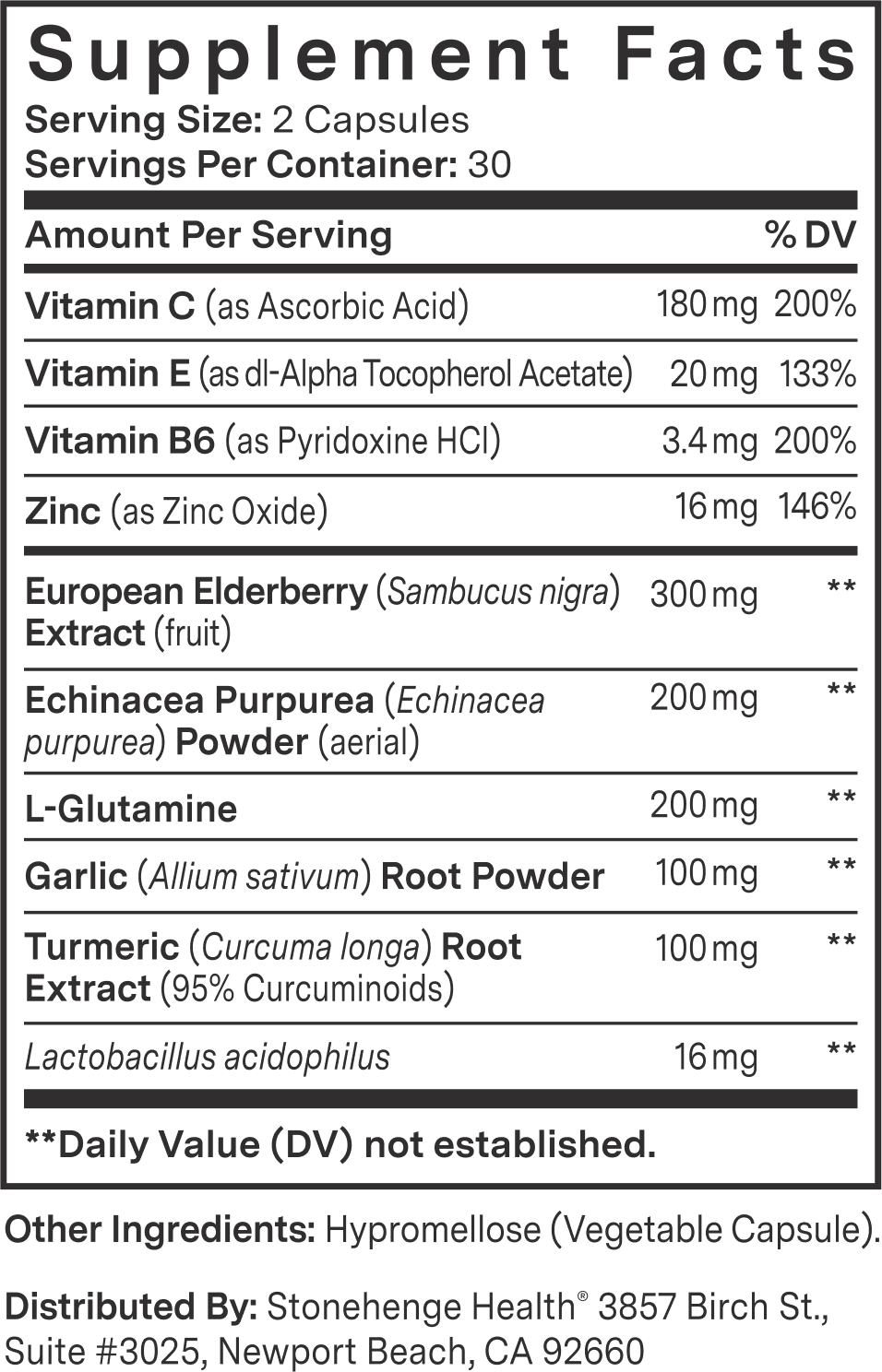 Immune support supplements can vary widely in quality and formulation. At Stonehenge Health, we’re committed to using high-quality ingredients and carefully considered dosages in every formula. Dynamic Immunity is a comprehensive blend featuring ten well-known ingredients selected to support overall immune health. We follow strict manufacturing guidelines and prioritize product integrity to deliver a supplement you can feel confident adding to your daily wellness routine.