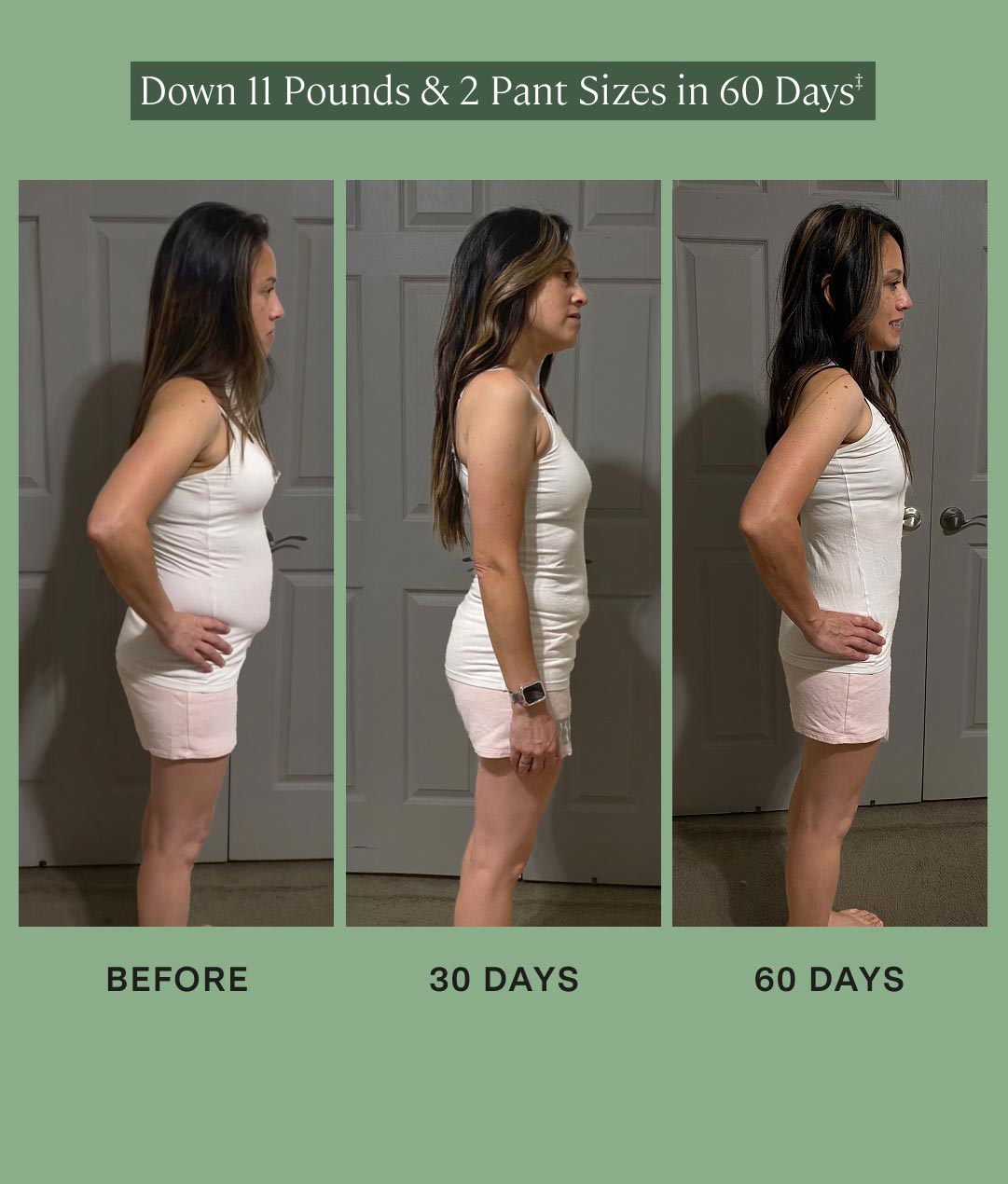 ‡Results may vary and are achieved with proper diet and exercise. Extreme results are not typical and may require extended time on the supplement. Results based on a 30-person at-home consumer test group. Featured customers are compensated for their time and for sharing honest experiences.